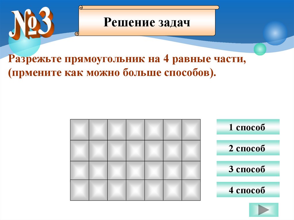 Решение задачРазрежьте прямоугольник на 4 равные части,