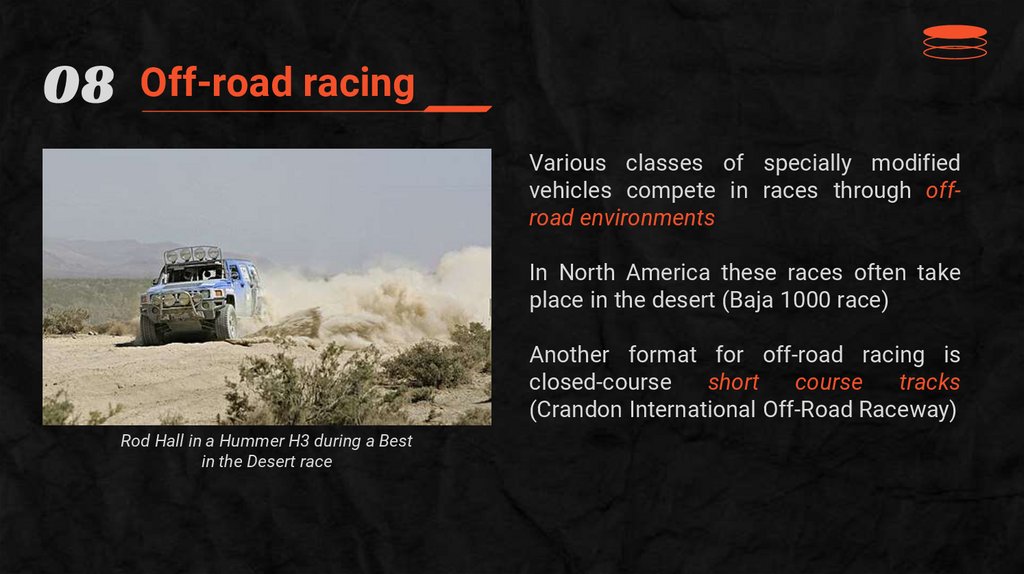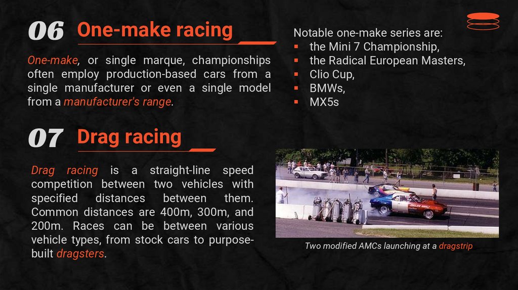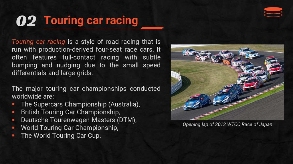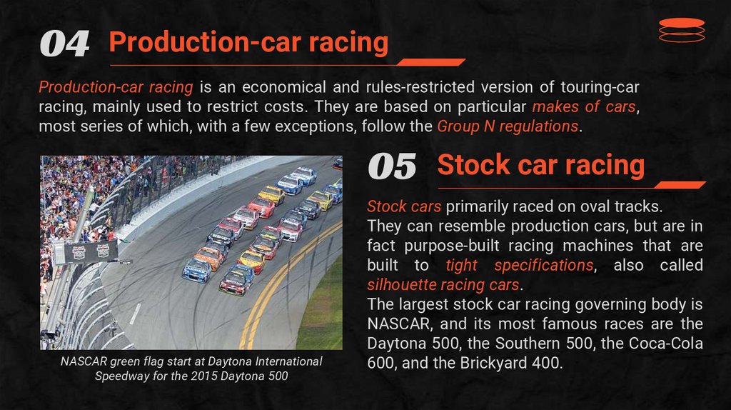 04 Production-car racingProduction-car racing is an economical and rules-restricted version of touring-car