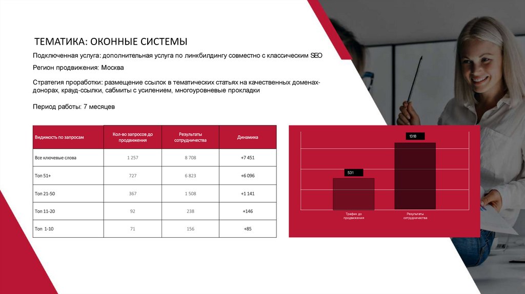 ТЕМАТИКА: ОКОННЫЕ СИСТЕМЫПодключенная услуга: дополнительная услуга по линкбилдингу совместно с классическим SEO