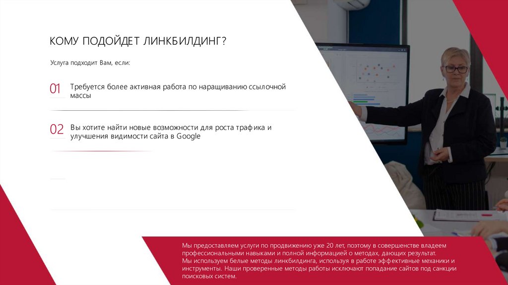 КОМУ ПОДОЙДЕТ ЛИНКБИЛДИНГ?Услуга подходит Вам, если: