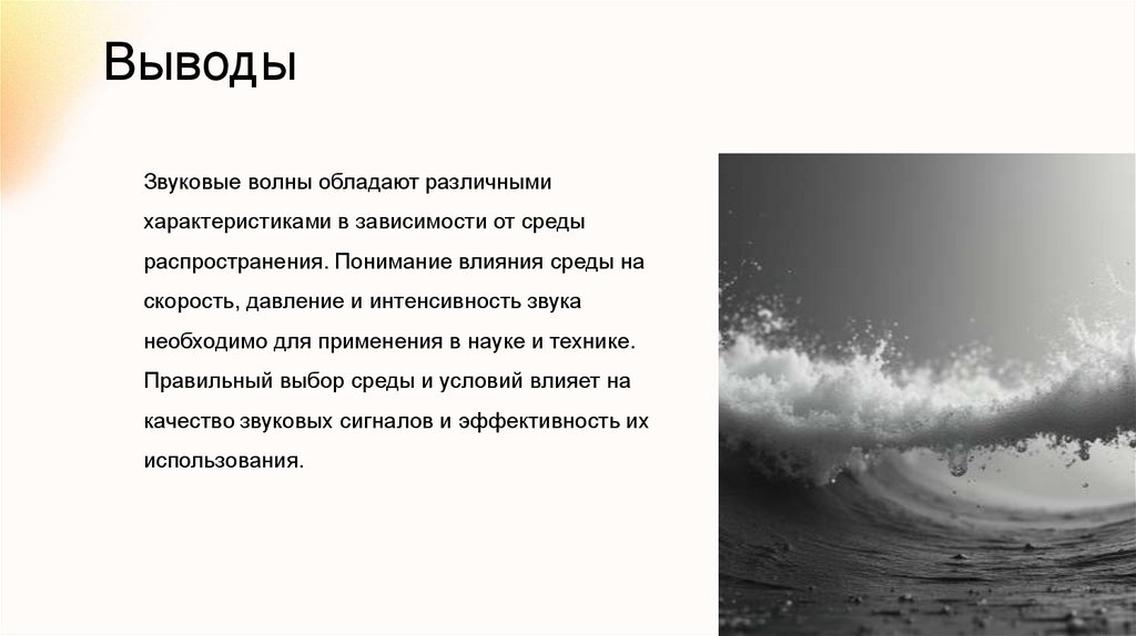 ВыводыЗвуковые волны обладают различными