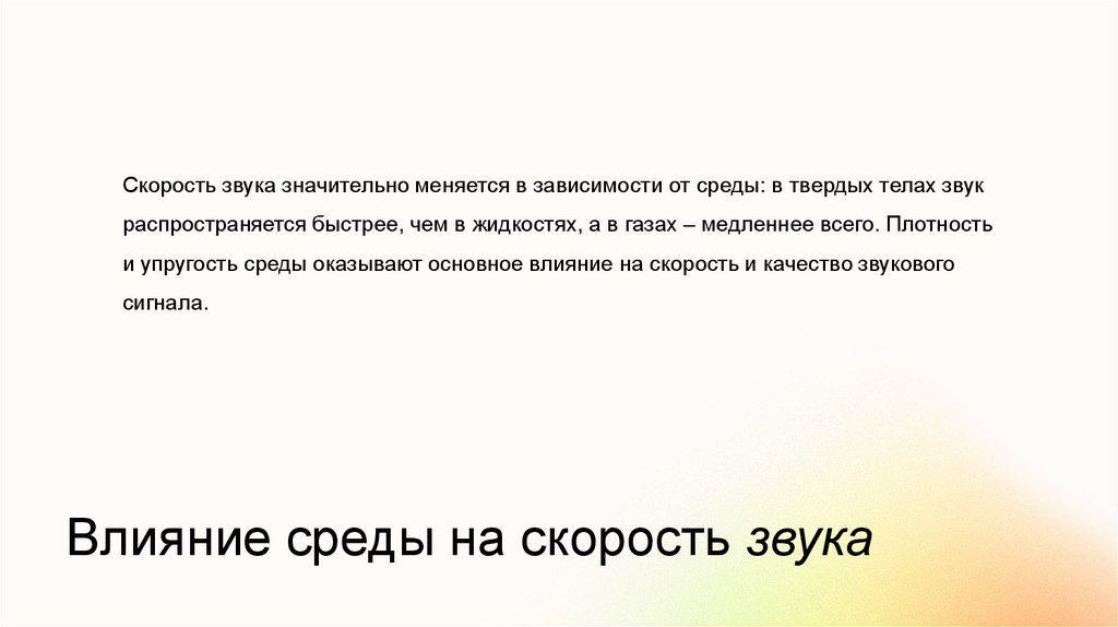 и упругость среды оказывают основное влияние на скорость и качество звукового