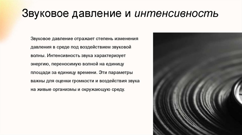 Звуковое давление и интенсивностьЗвуковое давление отражает степень изменения