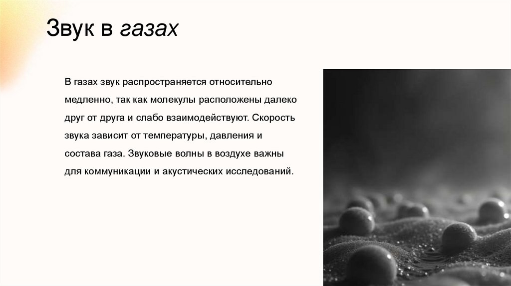 Звук в газахВ газах звук распространяется относительно