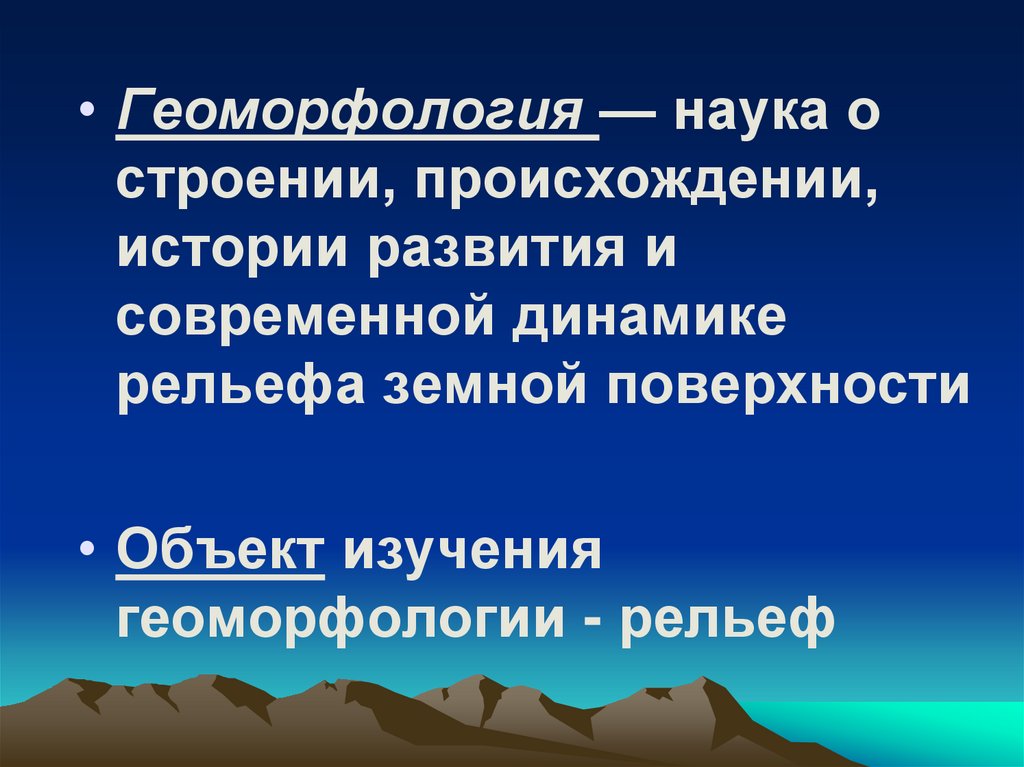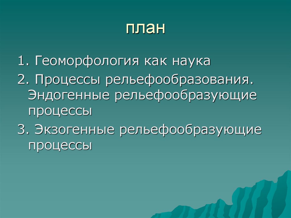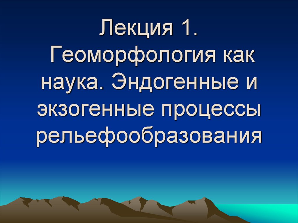 1. Геоморфология как наука2. Процессы рельефообразования.