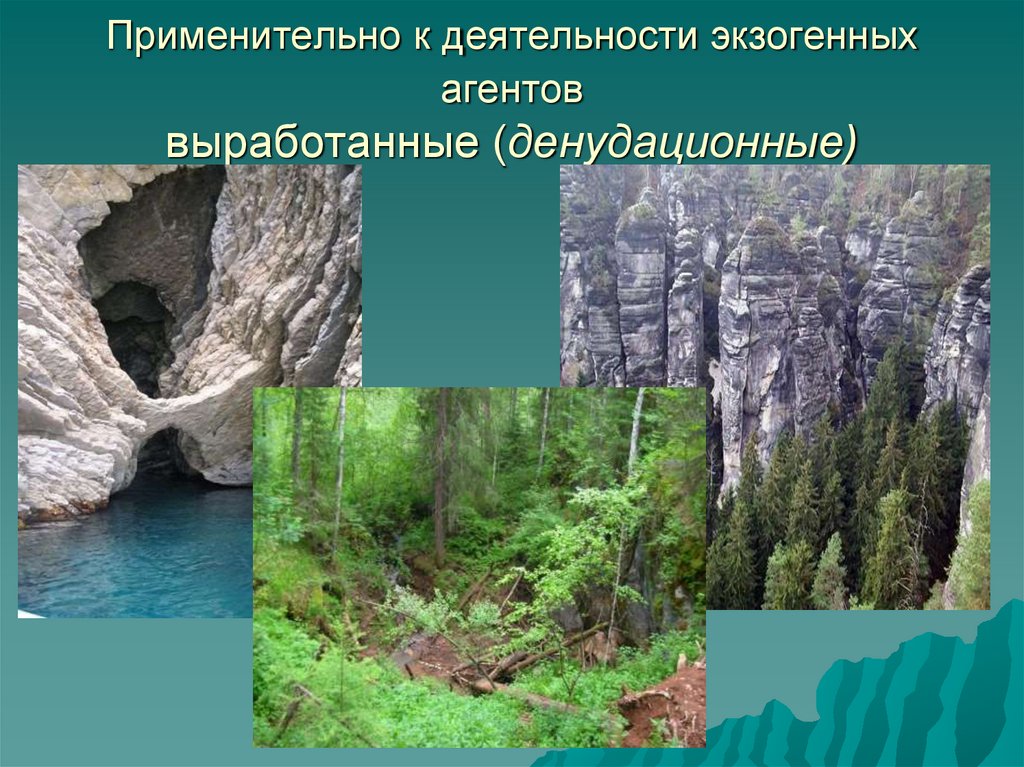 12. Применительно к деятельности экзогенных агентов выработанные (денудационные)
