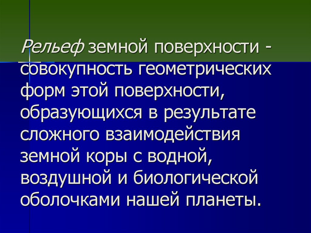 Рельеф земной поверхности совокупность геометрическихформ этой поверхности,