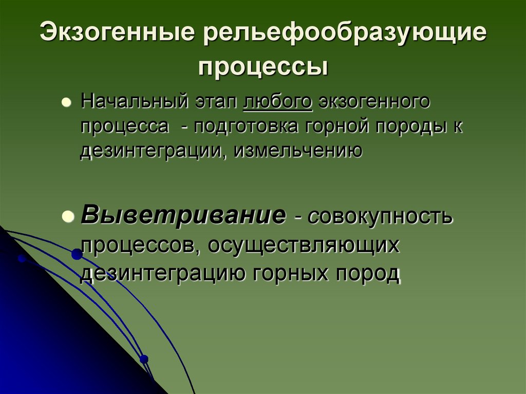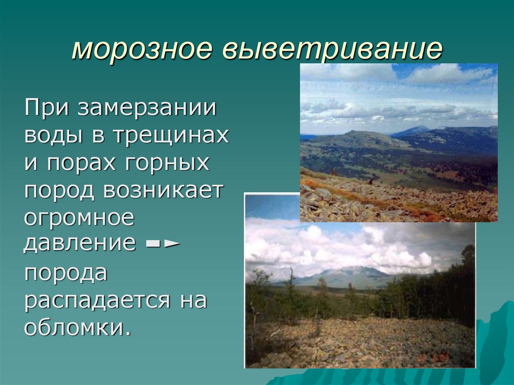 Начальный этап любого экзогенногопроцесса - подготовка горной породы к