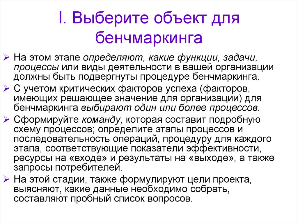 12. I. Выберите объект для бенчмаркинга