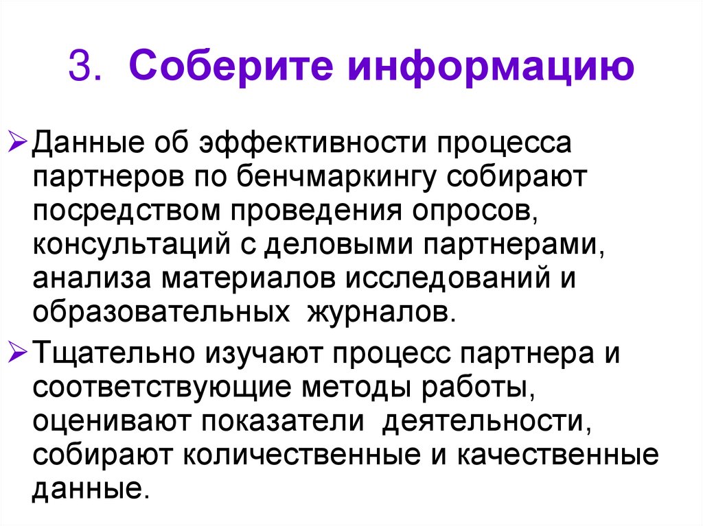 Данные об эффективности процессапартнеров по бенчмаркингу собирают