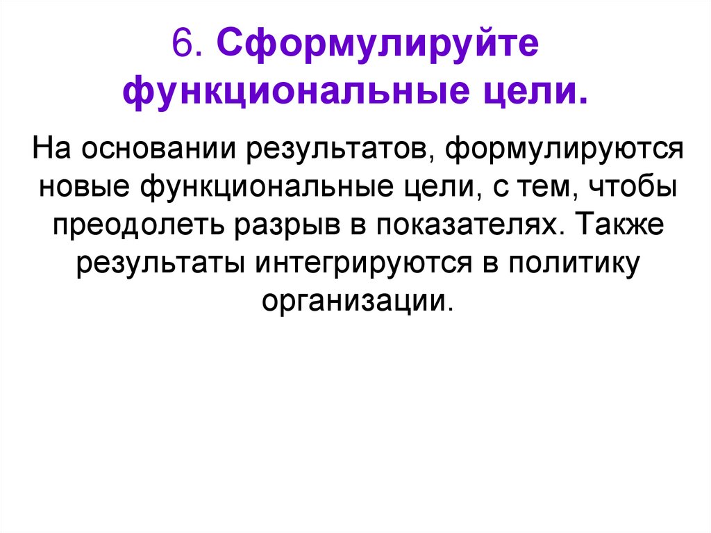 На основании результатов, формулируютсяновые функциональные цели, с тем, чтобы