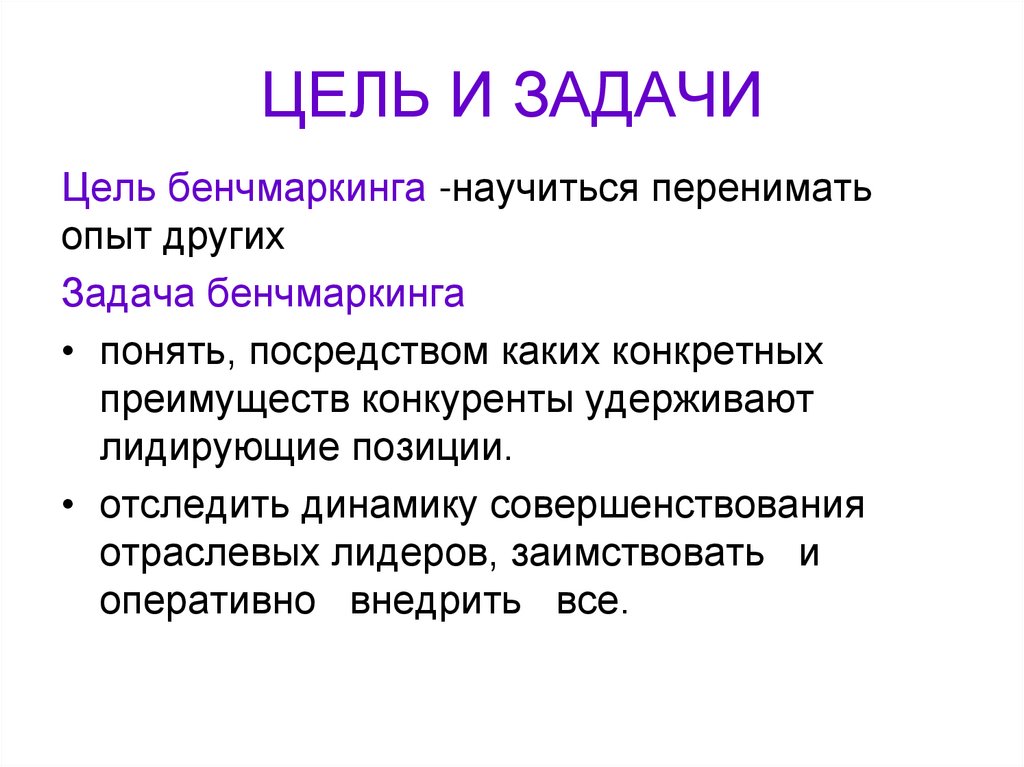 Цель бенчмаркинга -научиться перениматьопыт других