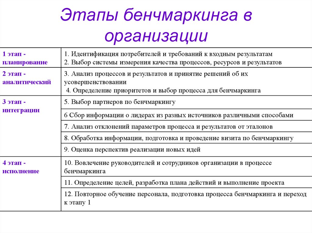 21. Этапы бенчмаркинга в организации