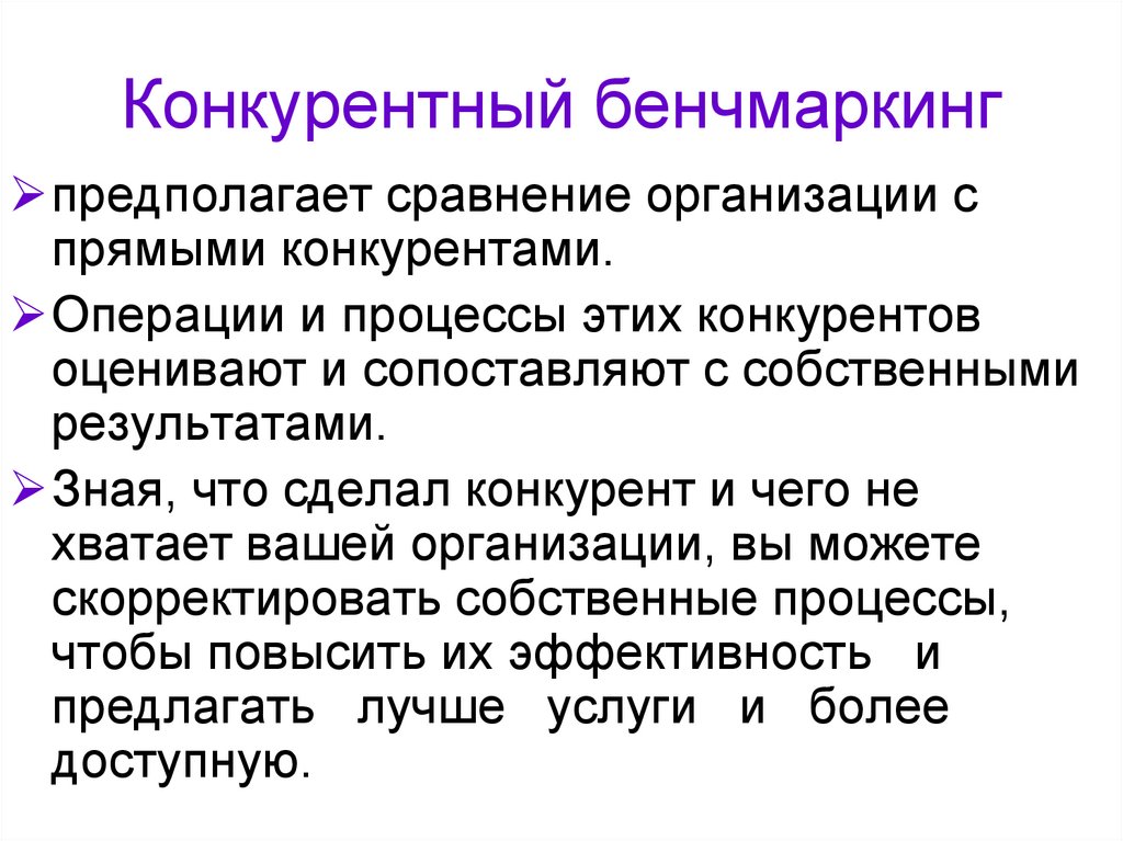 предполагает сравнение организации спрямыми конкурентами.