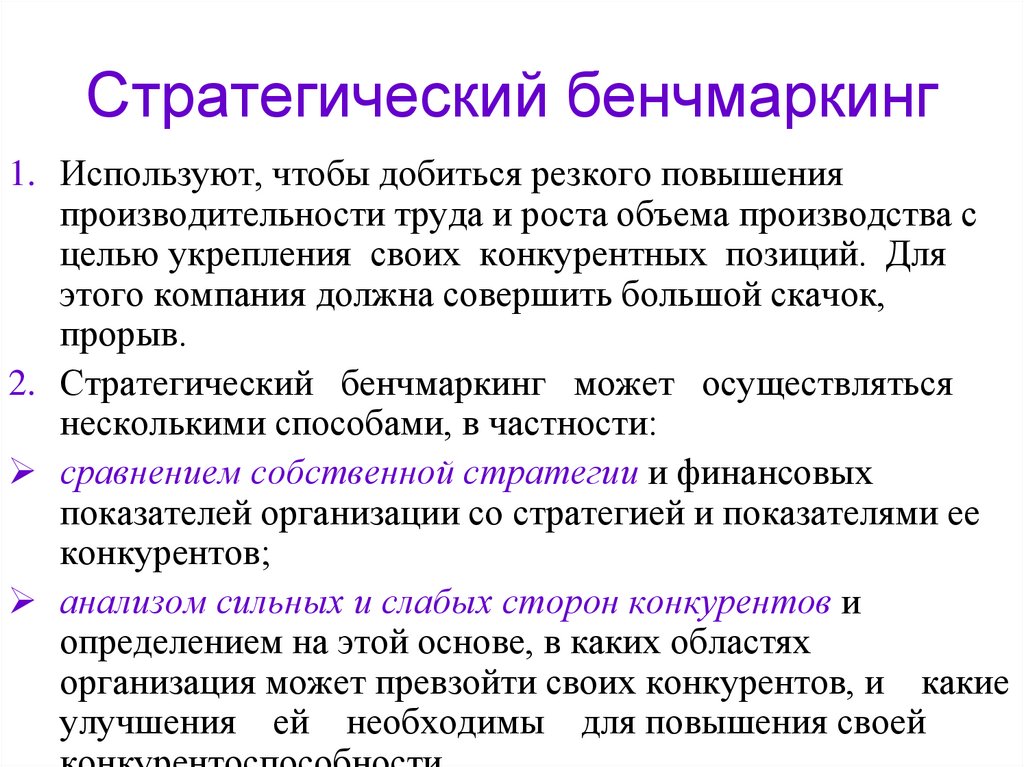 2. Стратегический бенчмаркинг может осуществляться