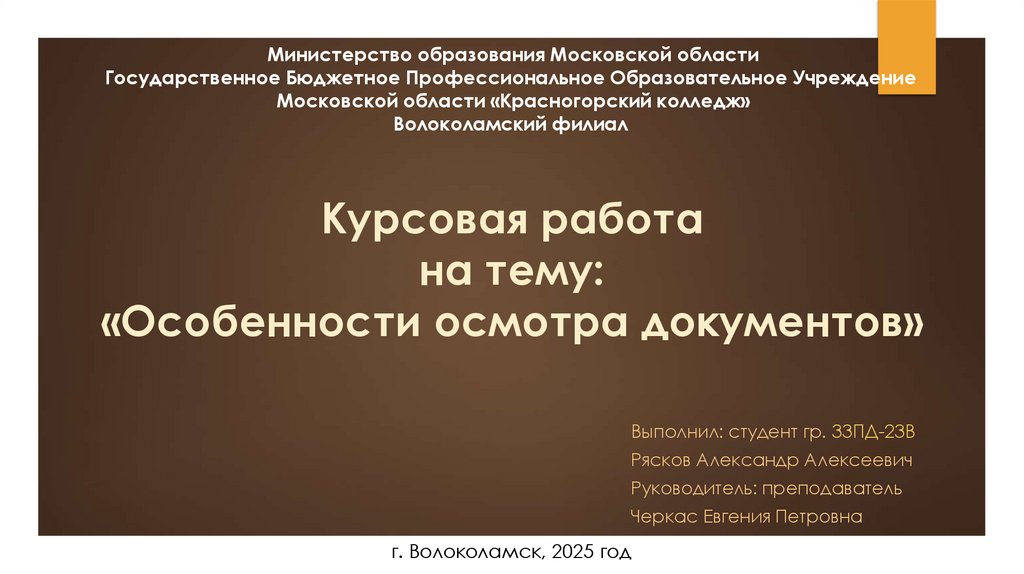1. Курсовая работа на тему: «Особенности осмотра документов»