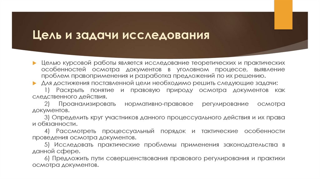 Целью курсовой работы является исследование теоретических и практическихособенностей осмотра документов в уголовном процессе, выявление
