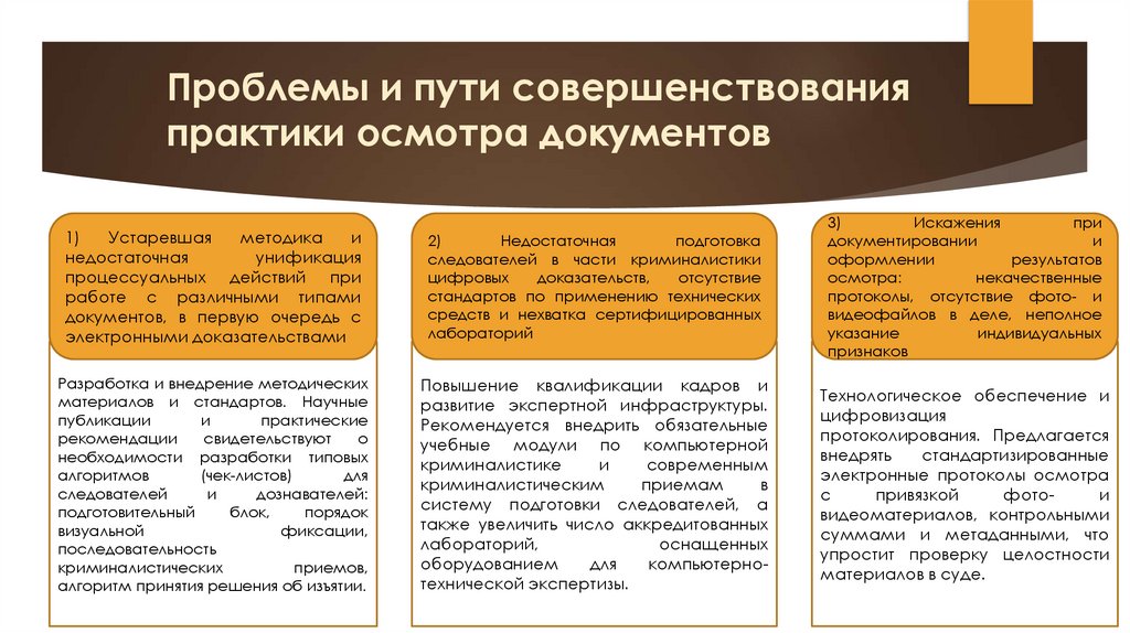 Дальнейшее развитие института осмотра документов должно происходить в направлении