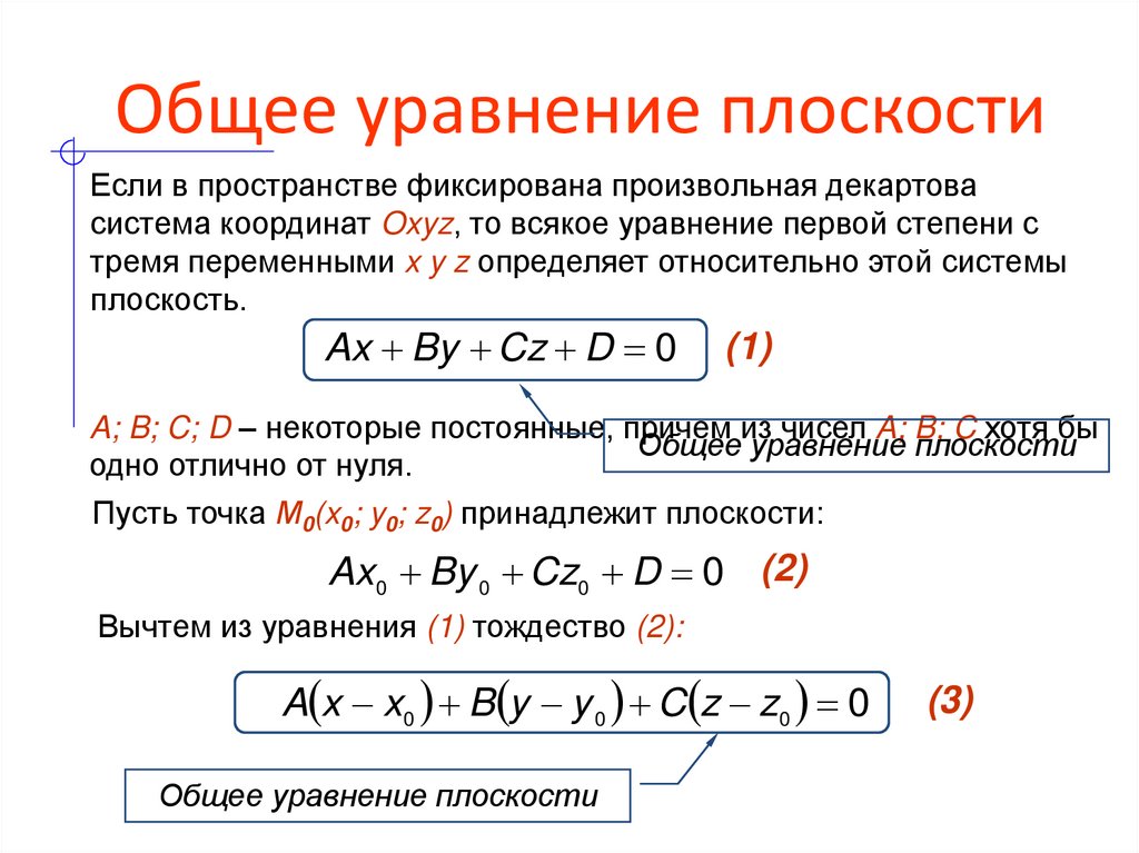 Общее уравнение плоскости