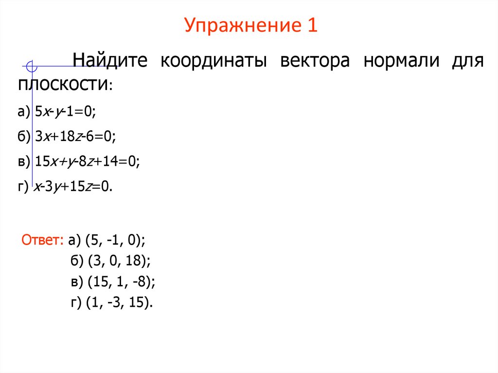 Найдите координаты вектора нормали дляплоскости: