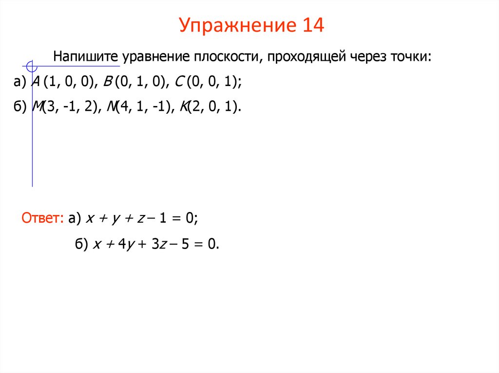 Ответ: а) x + y + z – 1 = 0;