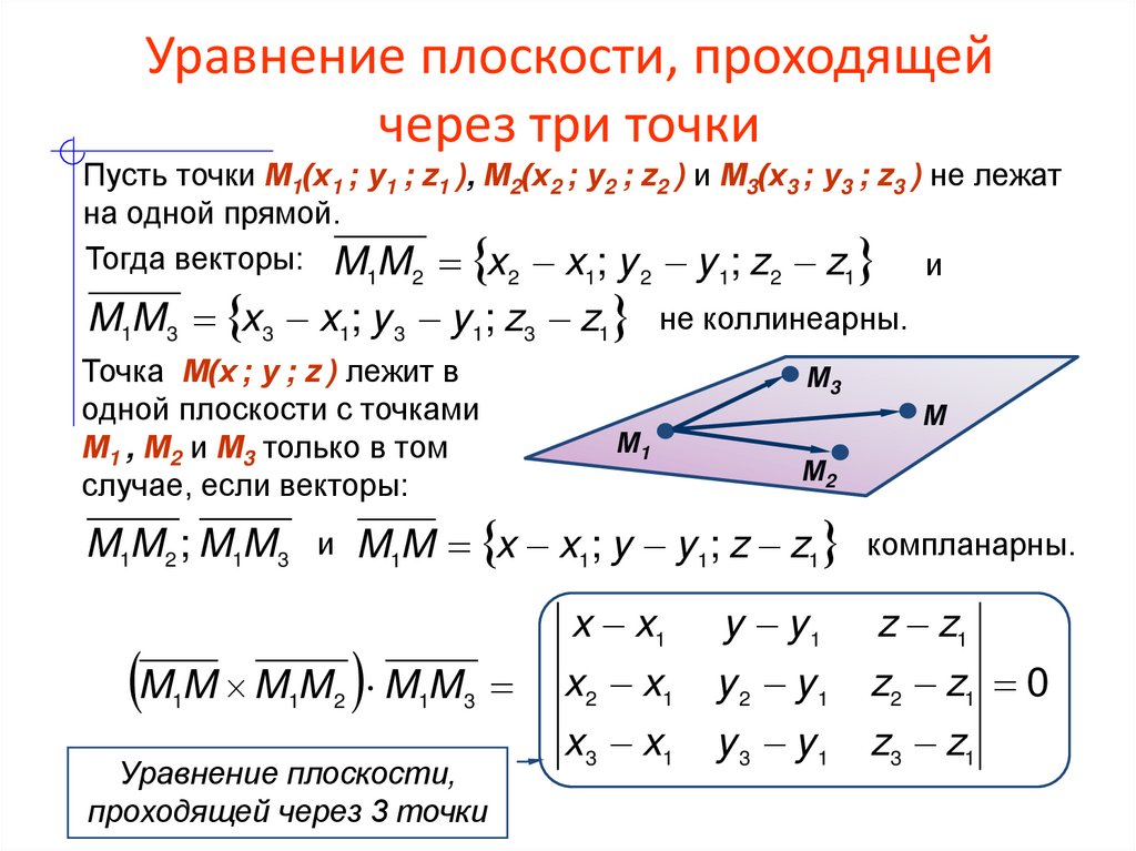 M1M 3 x3 x1; y 3 y 1; z3 z1 не коллинеарны.