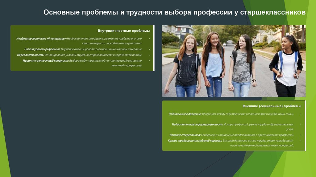 Основные проблемы и трудности выбора профессии у старшеклассниковВнутриличностные проблемы