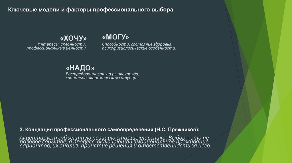 Ключевые модели и факторы профессионального выбора«ХОЧУ»