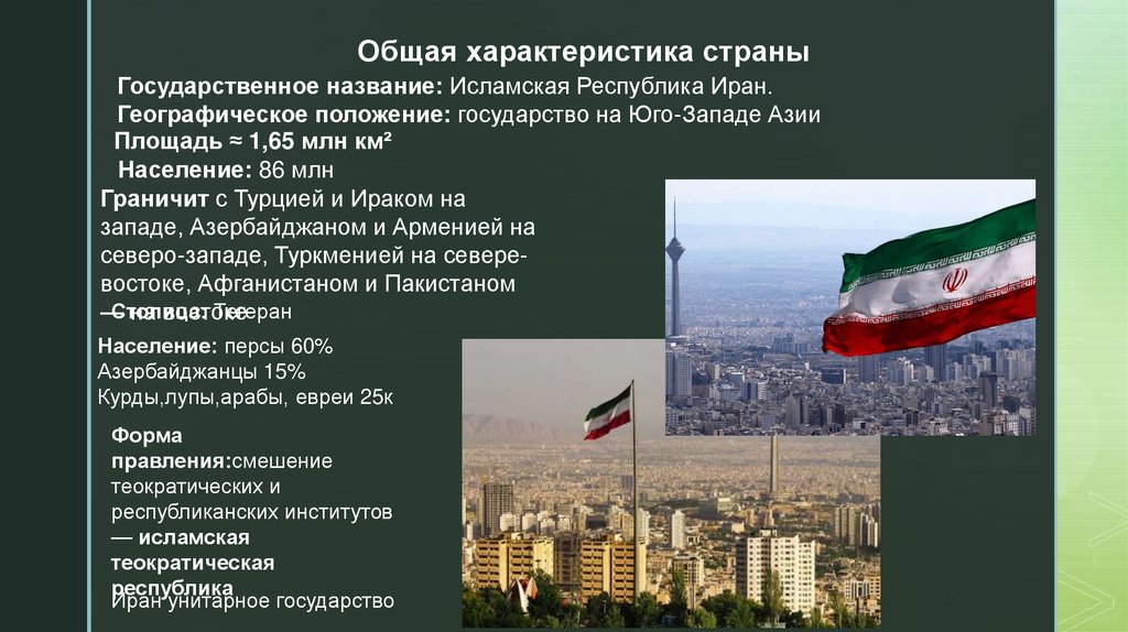 Общая характеристика страныГосударственное название: Исламская Республика Иран.