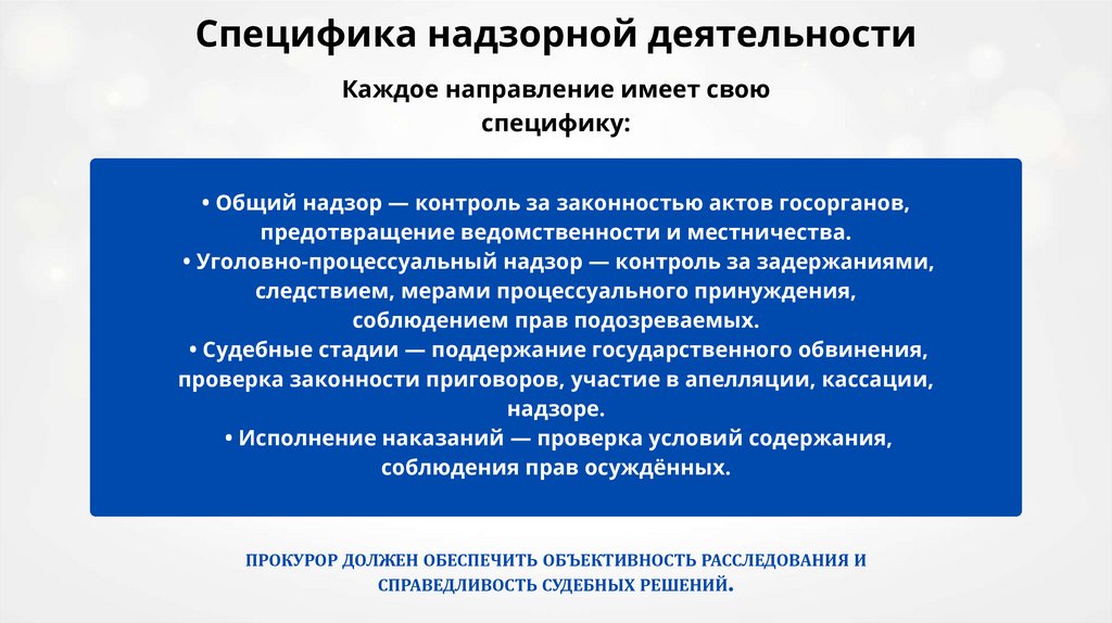 Специфика надзорной деятельностиКаждое направление имеет свою