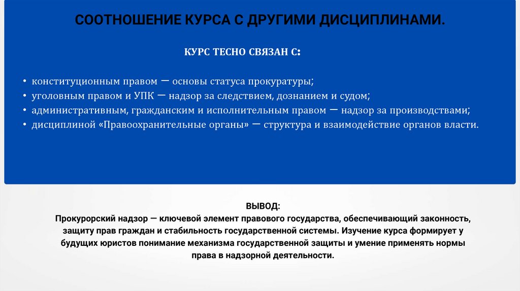 ПОНЯТИЕ ПРОКУРОРСКОГО НАДЗОРАИ КУРС «ПРОКУРОРСКИЙ НАДЗОР В