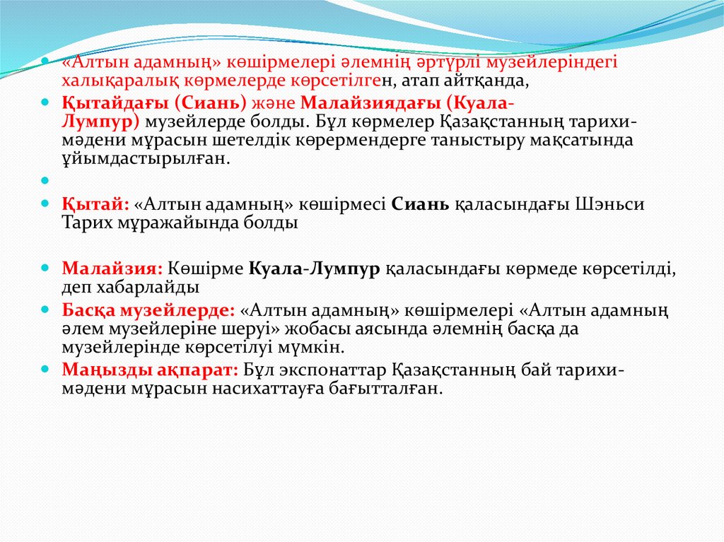Маңызды ақпарат: Бұл экспонаттар Қазақстанның бай тарихимәдени мұрасын насихаттауға бағытталған.