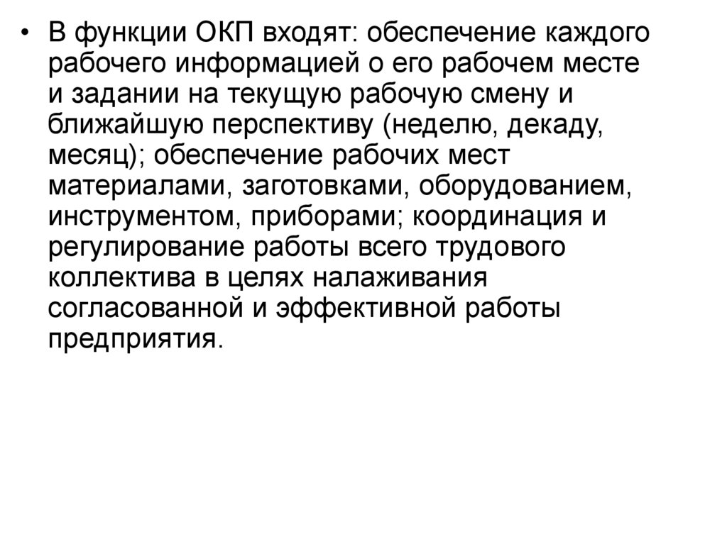 • В функции ОКП входят: обеспечение каждогорабочего информацией о его рабочем месте