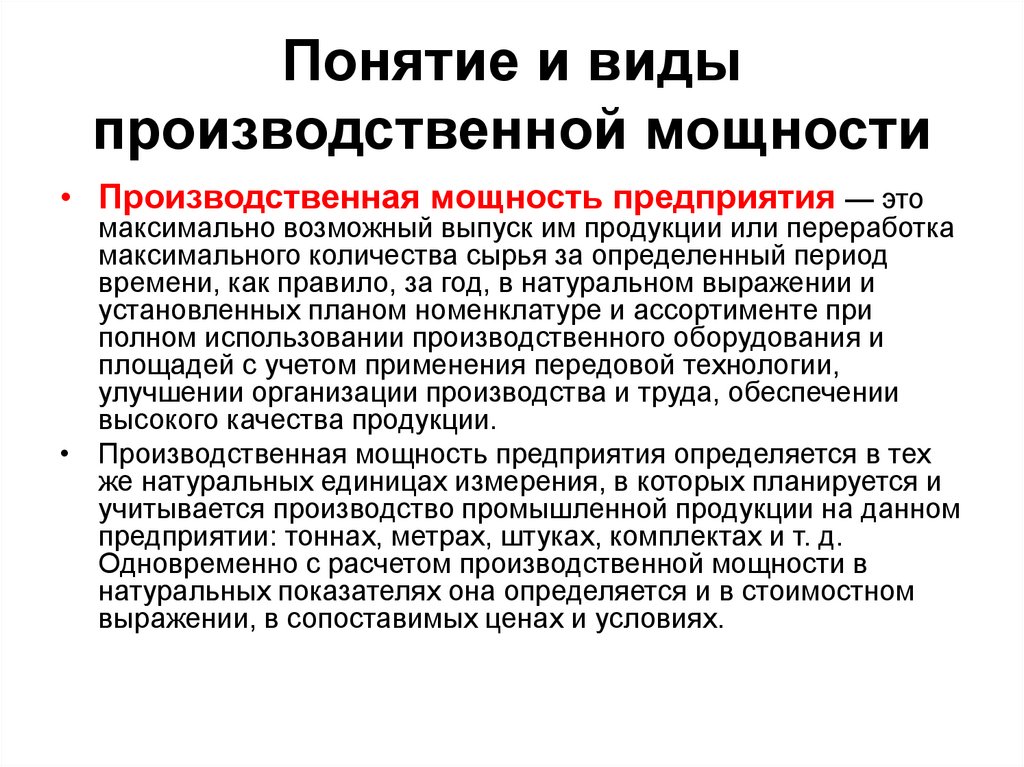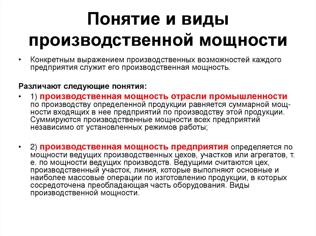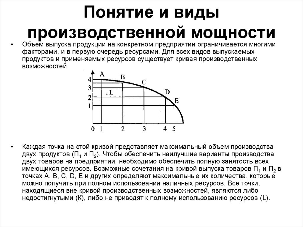 • Производственная мощность предприятия — этомаксимально возможный выпуск им продукции или переработка