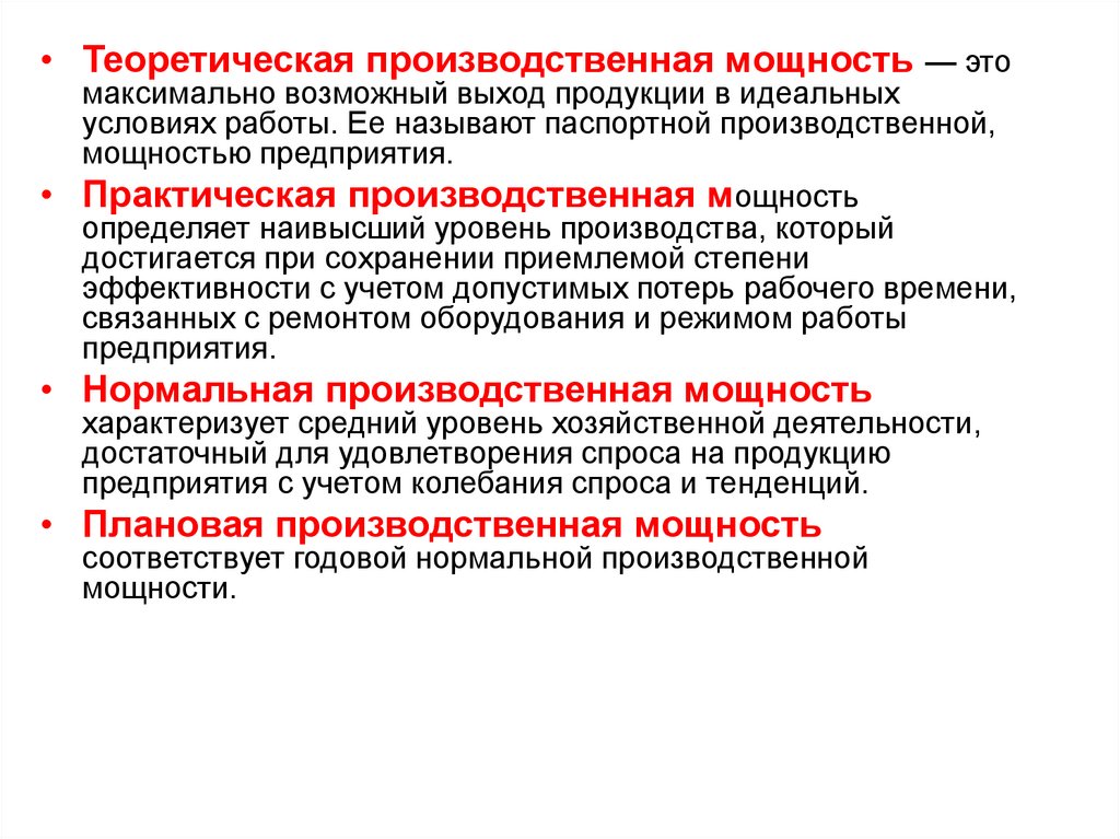 • Теоретическая производственная мощность — этомаксимально возможный выход продукции в идеальных