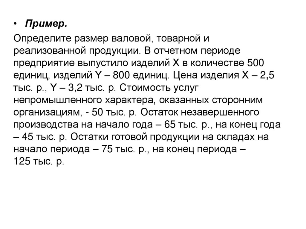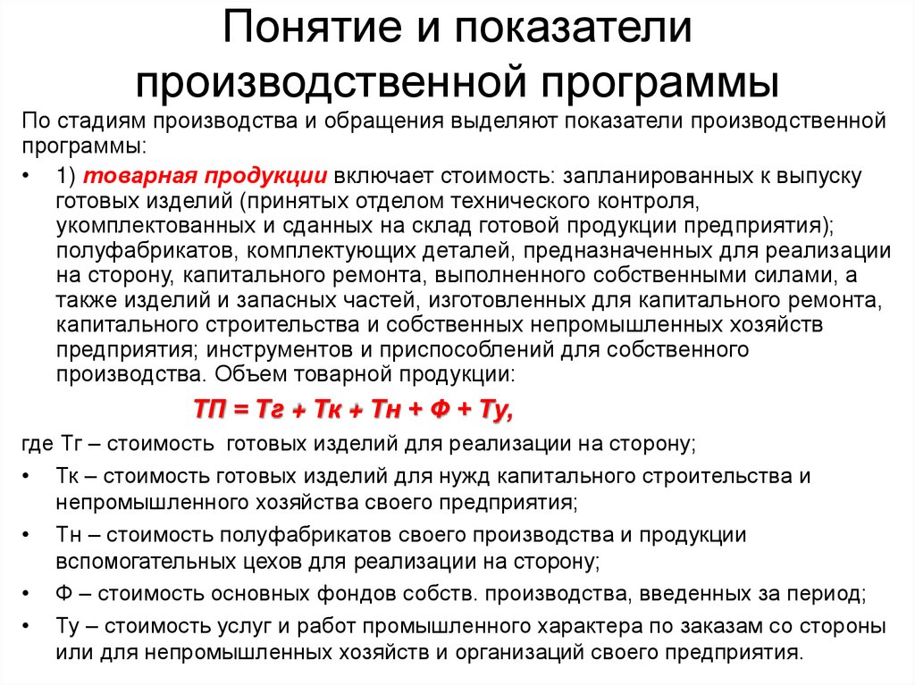 • 1) товарная продукции включает стоимость: запланированных к выпуску