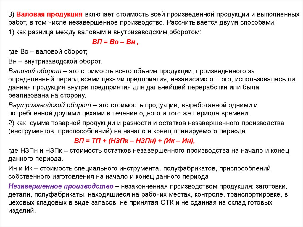 продукции, стоимость незавершенного производства, внутризаводской оборот