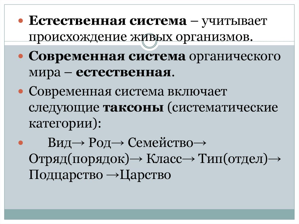 Отряд(порядок)→ Класс→ Тип(отдел)→