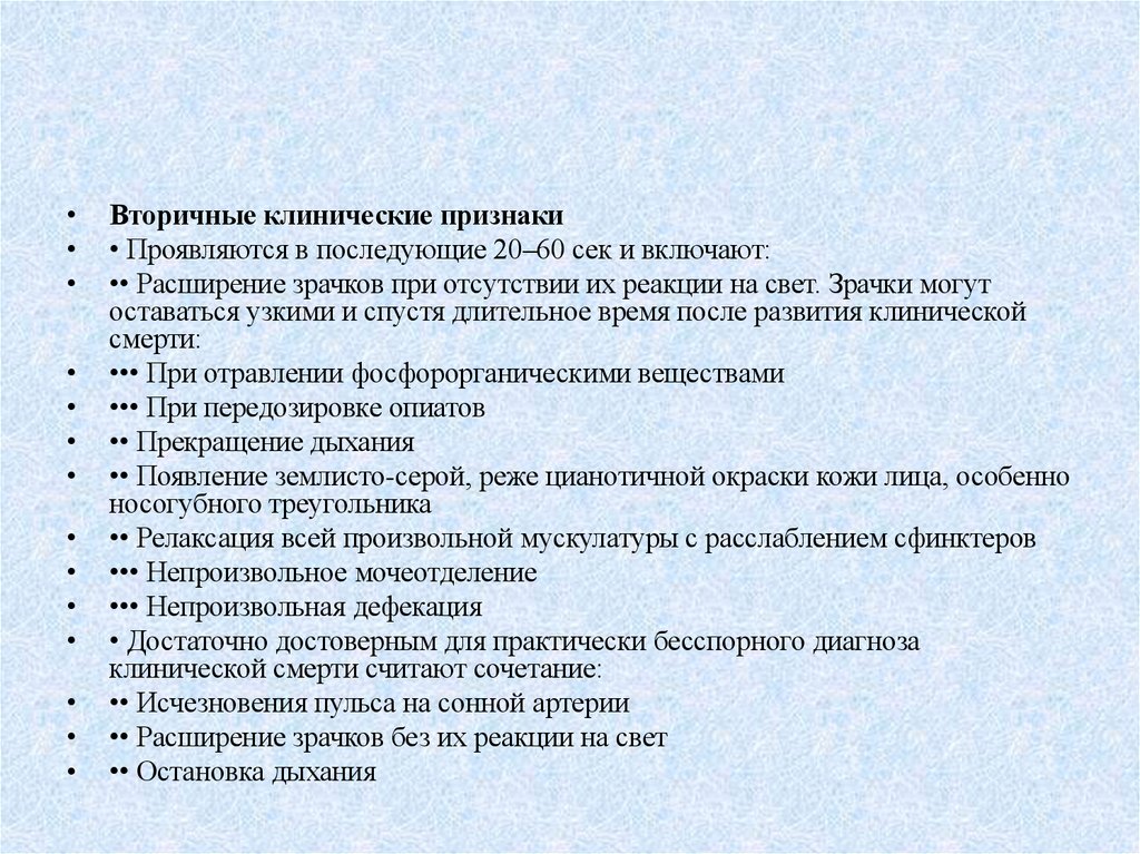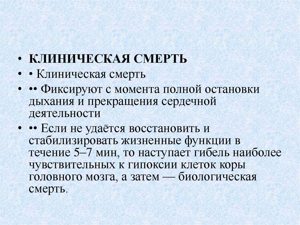 смерти у взрослых - критерии мертворожденности способы удлинения времени клинической смерти