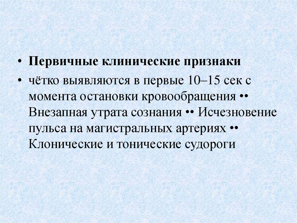 отсутствие восстановления спонтанного кровообращения Клинические