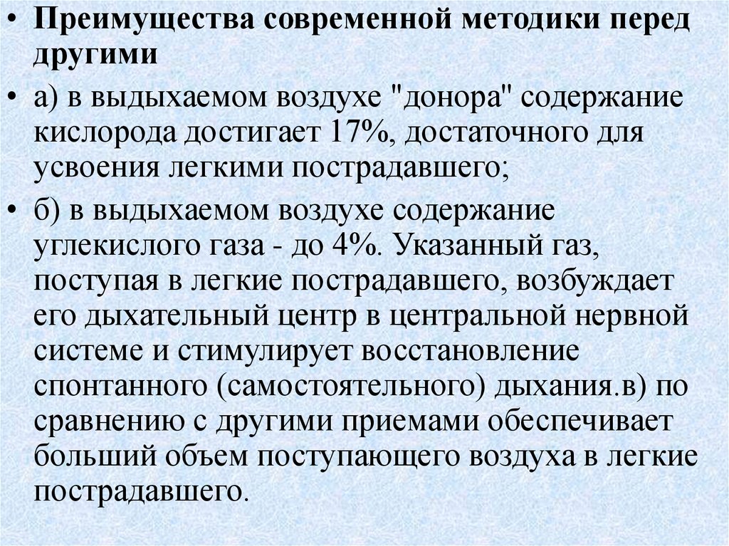 • Преимущества современной методики переддругими