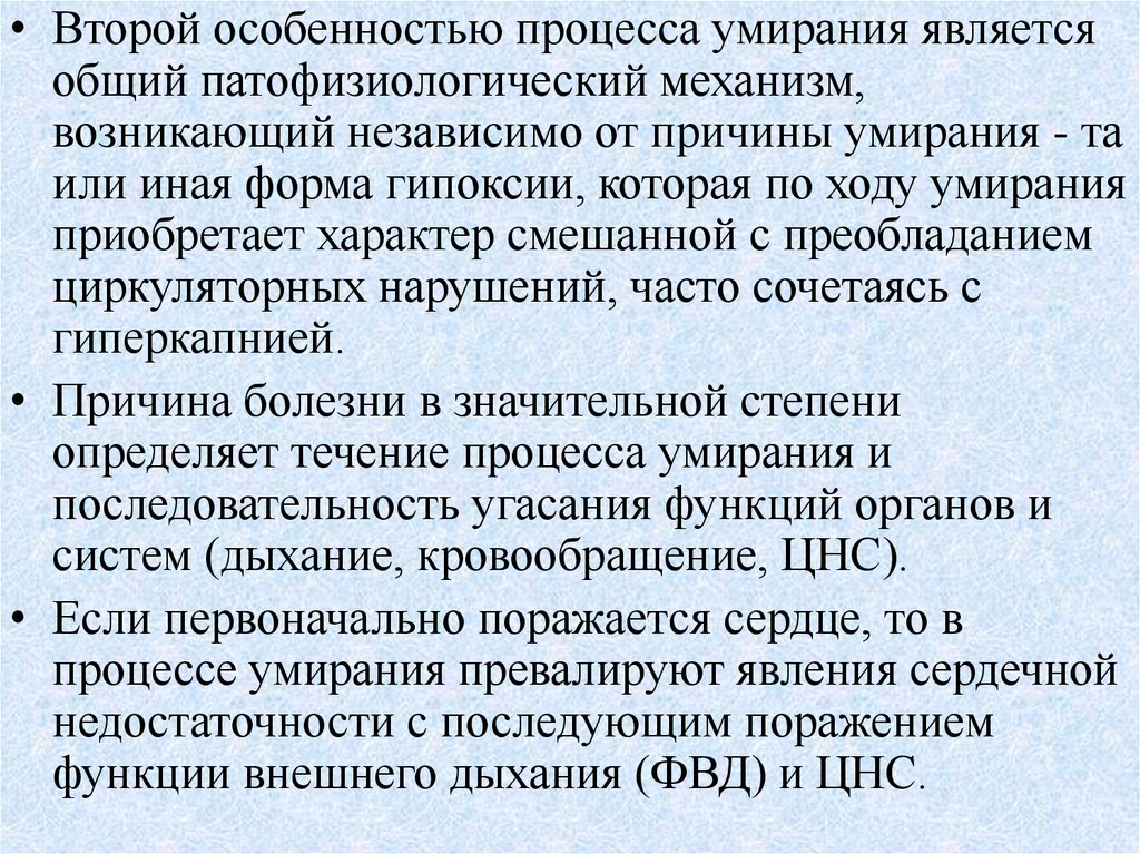 • Второй особенностью процесса умирания являетсяобщий патофизиологический механизм,