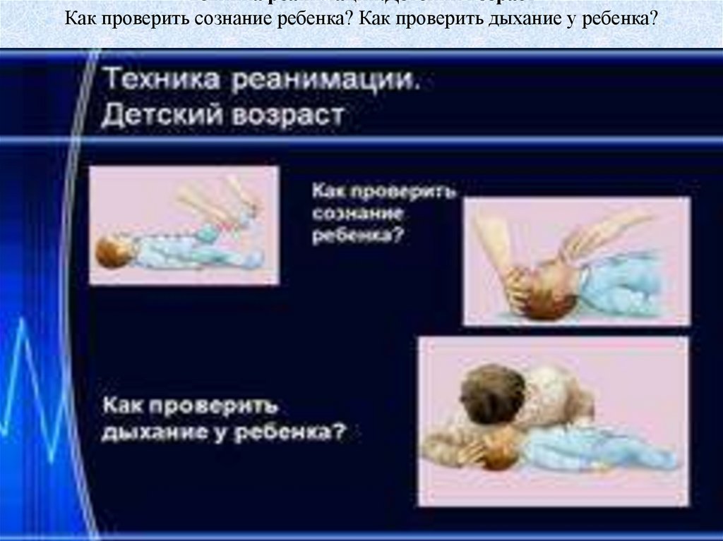 23. Техника реанимации.Детский возраст Как проверить сознание ребенка? Как проверить дыхание у ребенка?