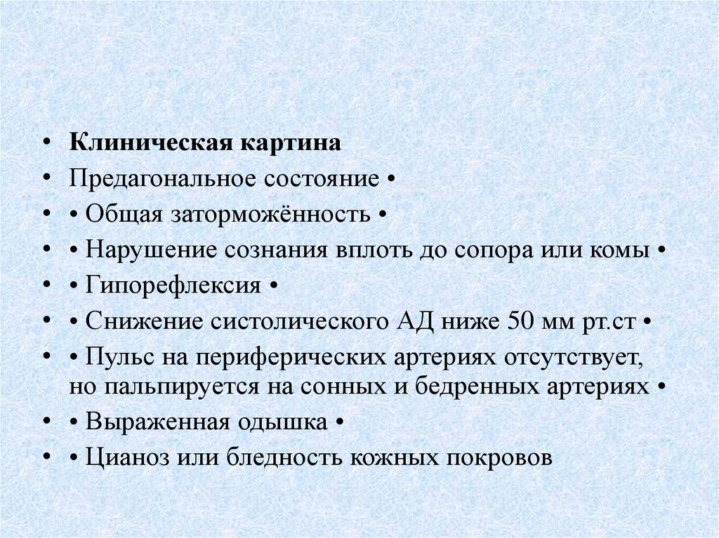 • Клиническая картина• Предагональное состояние