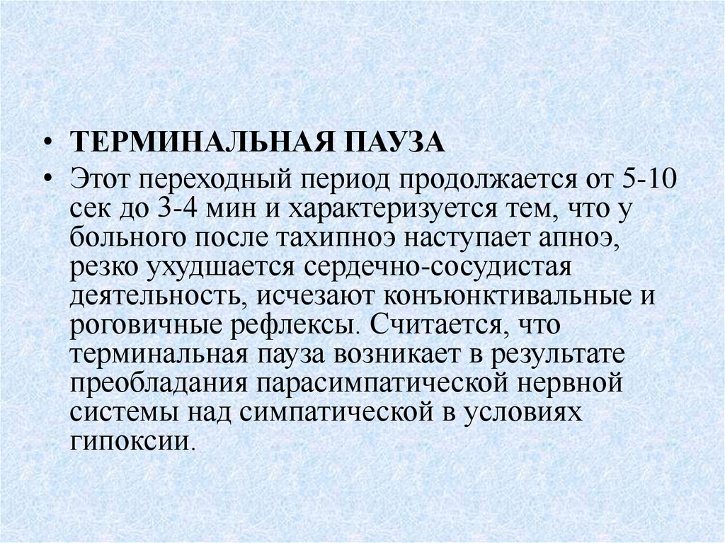 крови во внутренних органах слайдж-феномен терминальная пауза прекращение дыхания,