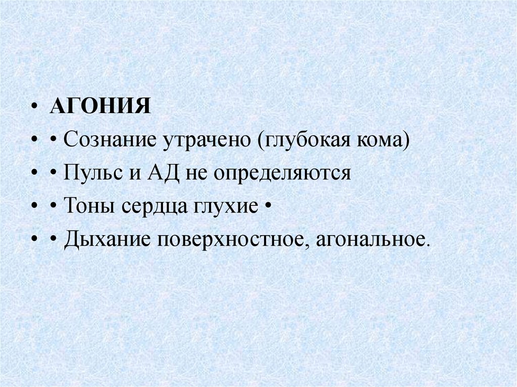 • АГОНИЯ• • Сознание утрачено (глубокая кома)