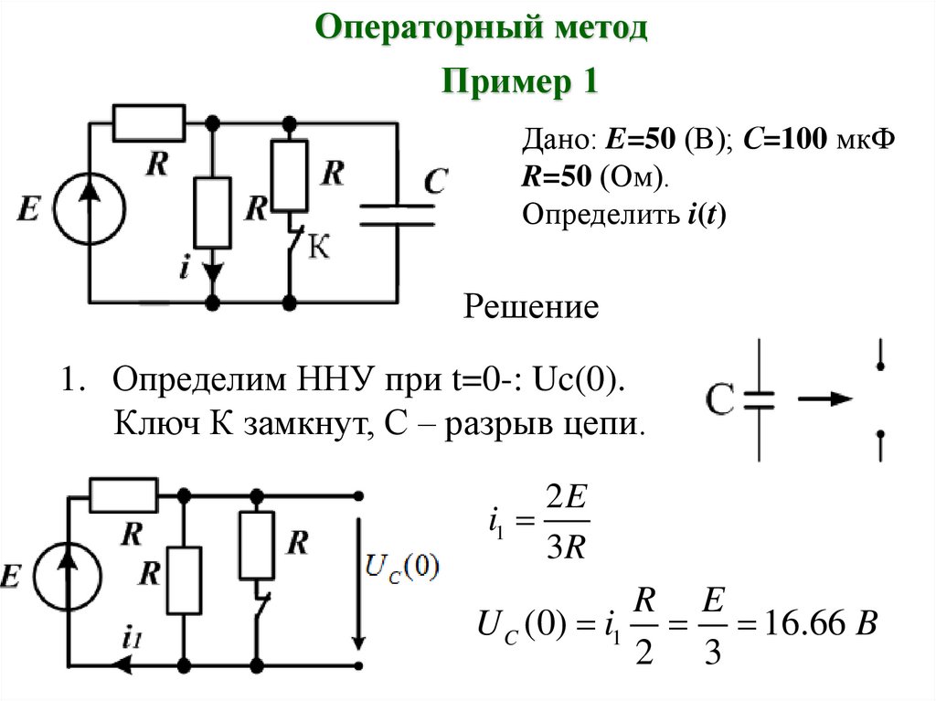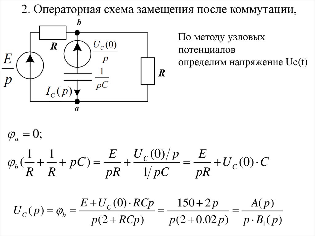 2. Операторная схема замещения после коммутации,ключ К замкнут.