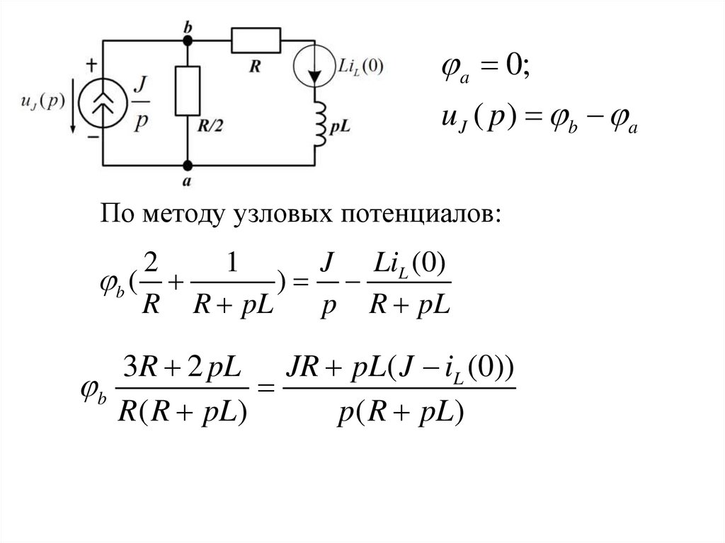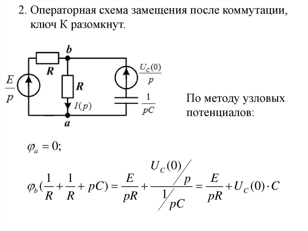 2. Операторная схема замещения после коммутации,ключ К разомкнут.