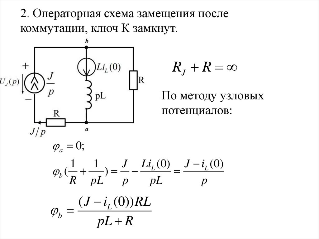 2. Операторная схема замещения послекоммутации, ключ К замкнут.