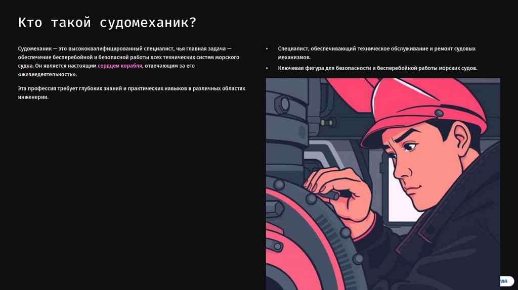 Кто такой судомеханик?Судомеханик — это высококвалифицированный специалист, чья главная задача —